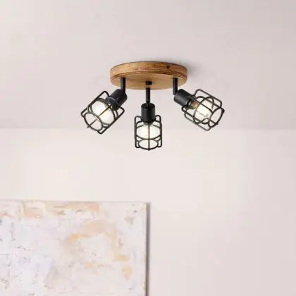 Brilliant Gwen Ceiling Light Metal Wood Black | 350mm - Suitable for 3x E14