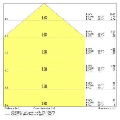 Beam angle of 100°