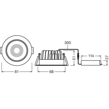 Ledvance LED Downlight Recessed Silver 8W 670lm 36D - 840 Cool White | Cutout 68mm - Dimmable