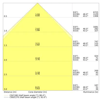 The colour code is a combination of colour rendering (CRI) and light colour (Kelvin). The first number indicates the colour rendering (1 = very poor colour rendering, 9 = maximum colour fastness). The second and third number contains the light colour. Example: the colour code 830 consists of good colour rendering (8) and warm white light (3000K). |