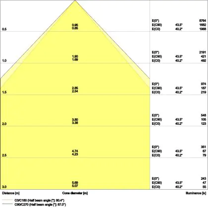 The colour code is a combination of colour rendering (CRI) and light colour (Kelvin). The first number indicates the colour rendering (1 = very poor colour rendering, 9 = maximum colour fastness). The second and third number contains the light colour. Example: the colour code 830 consists of good colour rendering (8) and warm white light (3000K). |