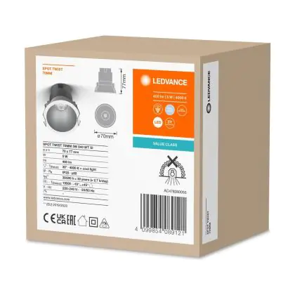 | Manufacturer Name | LED SPOT RECESS TWIST PRO 70mm 5W 4000K White Silver | |