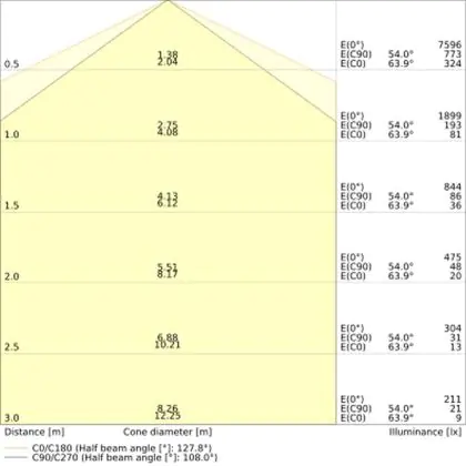 The colour code is a combination of colour rendering (CRI) and light colour (Kelvin). The first number indicates the colour rendering (1 = very poor colour rendering, 9 = maximum colour fastness). The second and third number contains the light colour. Example: the colour code 830 consists of good colour rendering (8) and warm white light (3000K). |