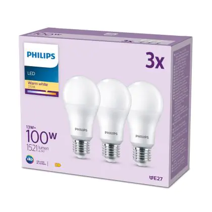 Multipack 3x Philips Bulb LED E27 Pear Frosted 13W 1521lm - 827 Extra Warm White