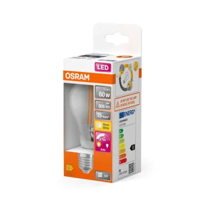 Osram Classic LED E27 Pear Filament Clear 7.3W 806lm - 827 Extra Warm White | Motion and Light Sensor - Replaces 60W