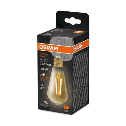 Osram Vintage 1906 LED E27 Edison Filament Gold 7.2W 806lm - 824 Extra Warm White | Replaces 60W