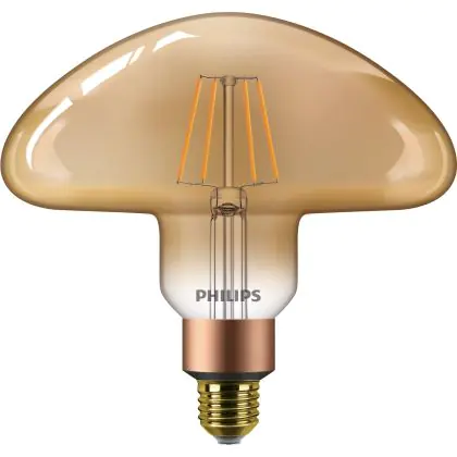 Philips Classic LED E27 Mushroom 200mm Filament Gold 5.5W 470lm - 818 Extra Warm White | Dimmable - Replaces 40W