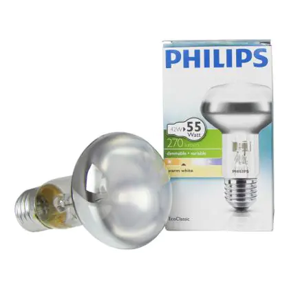 Philips EcoClassic Reflector are halogen lamps with blown glass reflectors. These lamps offer an economic gain of 30% compared to an incandescent lamp.