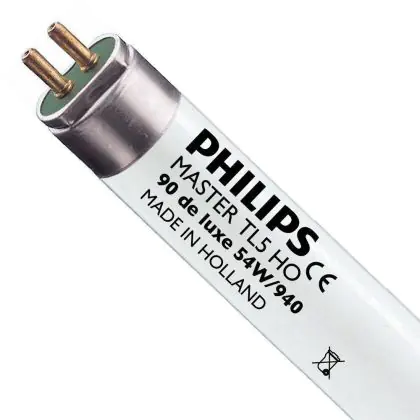 Philips TL5 High Output 90 De Luxe are very thin fluorescent tubes (16 mm diameter) that were designed specifically for the needs of businesses. Master TL5 HO 90 Deluxe give off natural colors and illuminated objects appear to be in daylight. Philips TL5 HO 90 De Luxe 54W 940 - 115cm have a G5 base type and measure 115 cm.